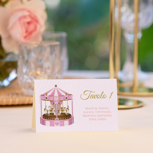 Segnatavolo pieghevole Battesimo carosello