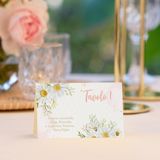 Segnatavolo pieghevole Battesimo margherite