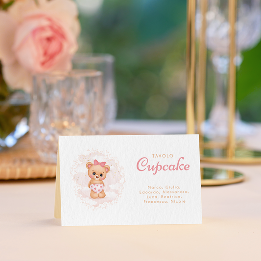 Segnatavolo pieghevole Battesimo orsetto