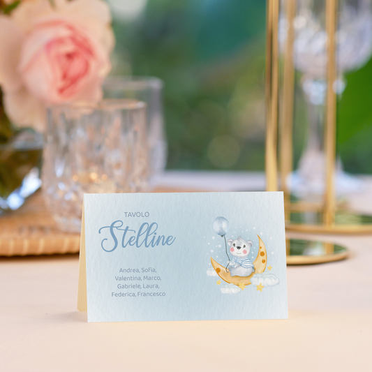 Segnatavolo pieghevole Battesimo orsetto sulla luna