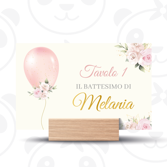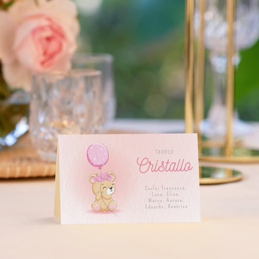 Segnatavolo Battesimo orsetta con palloncino