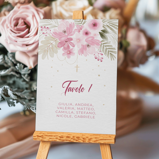 Segnatavolo Battesimo floreale