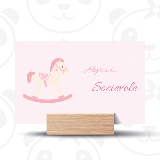 Segnatavolo pieghevole Battesimo cavallino a dondolo