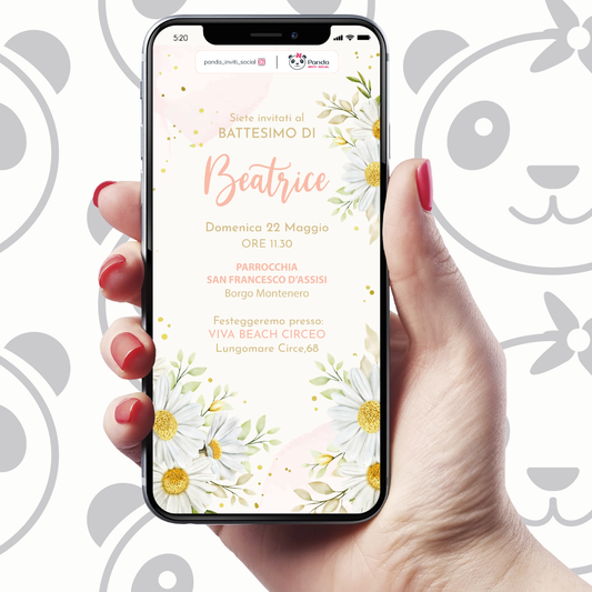 Digital invitation for baby girl baptism with daisies