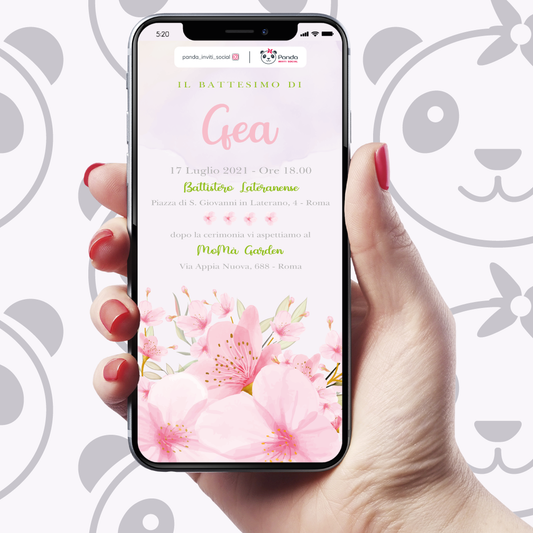 Floral baby girl baptism digital invitation