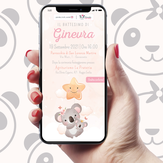 Koala girl baptism digital invitation