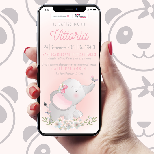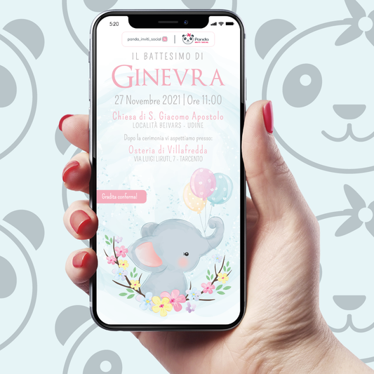 Digital invitation for baby elephant baptism