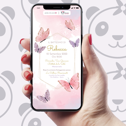 Butterfly baby girl baptism digital invitation