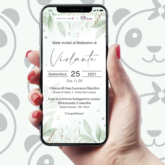 Digital invitation for baptism of little girl with leaves